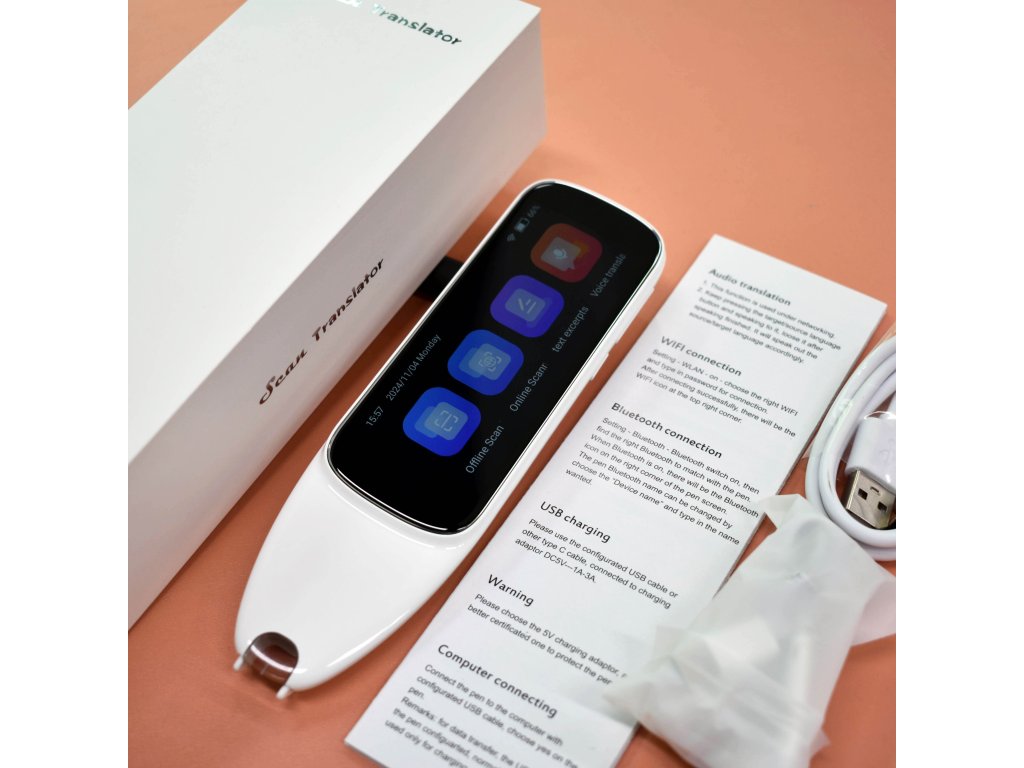 Text Translator-Scanner Anobic ST5 - skenovací pero, hlasový překladač (134 jazyků), textový skener, diktafon. Toto praktické zařízení je vybaveno vysoce citlivým skenerem a dokonalým skenováním textu. Má vestavěnou dobíjecí baterii s kapacitou 1200 mAh a 3,51" barevný dotykový displej s rozlišením 800 × 340 pixelů.