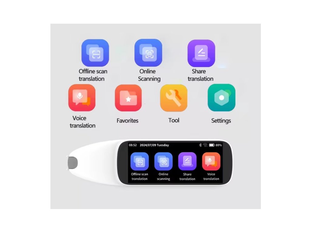 Podporuje více než 134 jazyků vzájemného online překladu v reálném čase (s průběžnou bezplatnou doživotní aktualizací softwaru OTA, která obohacuje další jazyky a funkce). Je vytvořen s robustními motory umělé inteligence a vestavěným korpusem o 2 milionech záznamů. Je tenčí a přenosnější než tradiční elektronické hlasové překladače ve tvaru telefonu a splňuje všechny požadavky na cestách.